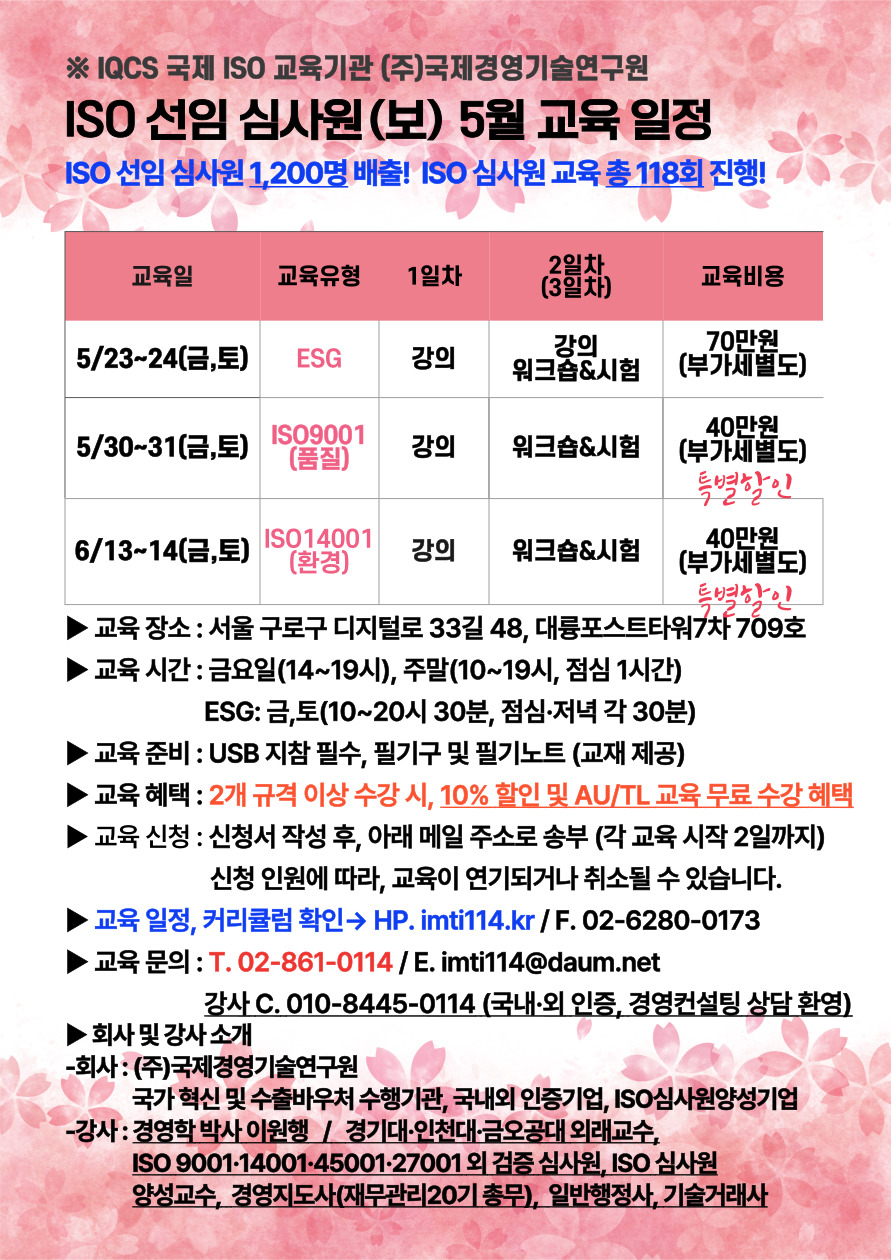 5¿ù ISO±³À° ½Åû¼_(ÁÖ)±¹Á¦°æ¿µ±â¼ú¿¬±¸¿ø.hwp