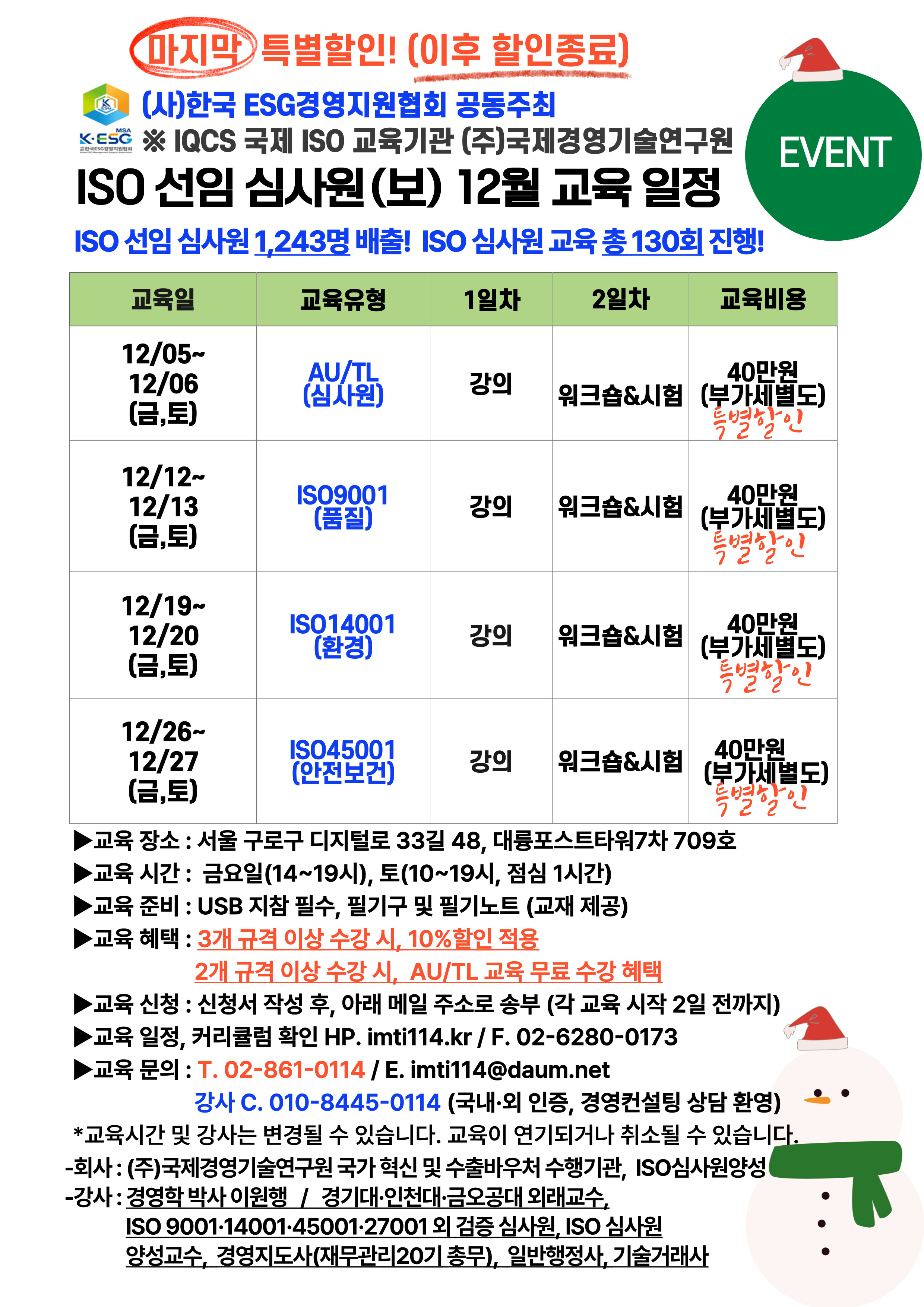 12¿ù ISO ¼±ÀÓ½É»ç¿ø(º¸) ±³À° ÀÏÁ¤ ¾È³»µå¸³´Ï´Ù.
