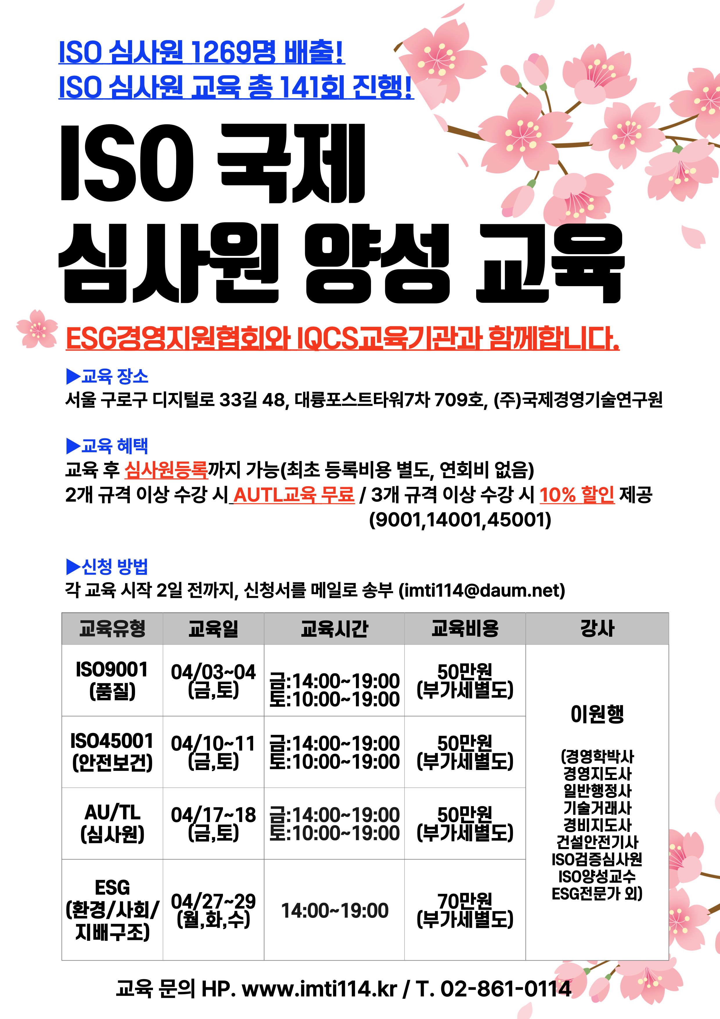 4¿ù ISO ¼±ÀÓ½É»ç¿ø ±³À° ÀÏÁ¤ ¾È³»µå¸³´Ï´Ù.